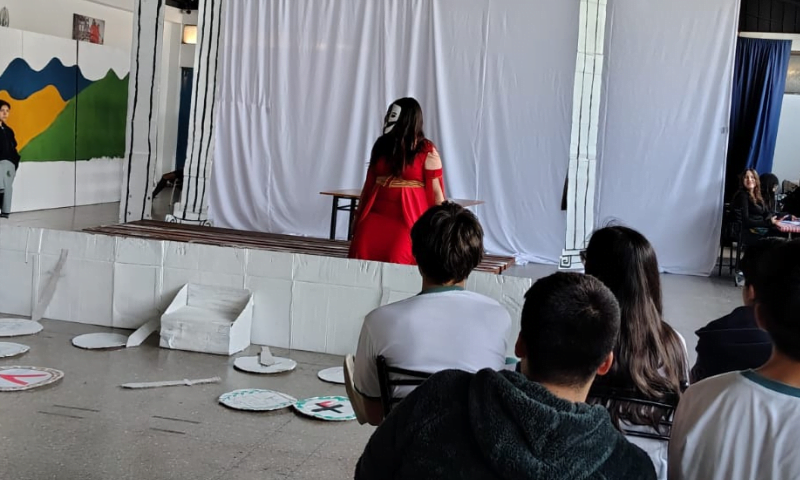 Luego de cuatro semanas de diseño de producción y ensayos en el horario de Lengua y Literatura se dio término a este proceso en una representación artística cargada de intensidad y belleza.
